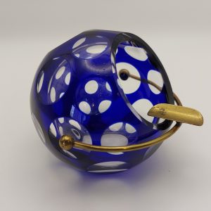 Glass Ball Ashtray Blue Overlay Brass Rest c1970s Marita Voigt for Harzkristall