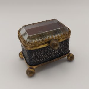 Continental 19th Century Ring Casket Bevel Glass Lid Quilted Interior
