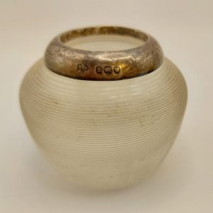 Edwardian Ribbed Glass Match Striker Hallmarked Silver Rim London 1903